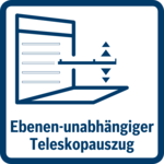 - 1-fach ebenunabhängige Teleskopschiene: Kann in jeder Backebene platziert werden.