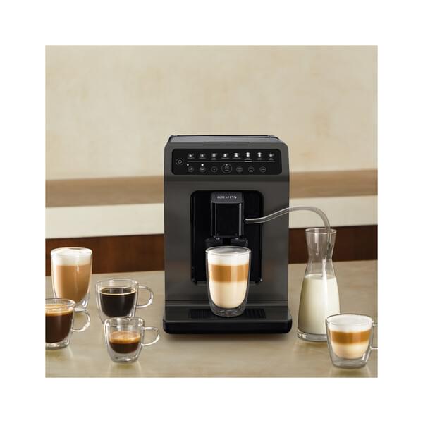 Der platzsparende Classic Kaffeevollautomat im modernen Krups Design sorgt dank Brühgruppe aus Metall und Milk-Advanced-Technologie für immer beste Kaffee-Ergebnisse.